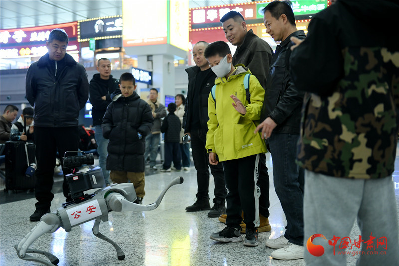 蘭州西站派出所民警利用機(jī)器犬開展治安巡邏防范、法治宣傳等各項工作