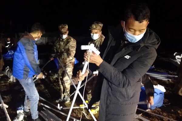 4月1日當晚,長須貢瑪鄉(xiāng)紀委干部跟隨救援隊深入震中江瑪村等地開展災(zāi)情摸排和群眾救助工作,確保各類救災(zāi)物資及時發(fā)放到位。圖為長須貢瑪鄉(xiāng)紀檢監(jiān)察干部在受災(zāi)群眾臨時安置點參與救災(zāi)帳篷搭建工作。