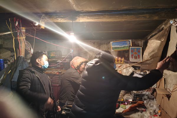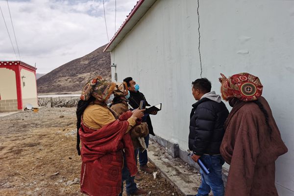 圖為石渠縣紀檢監(jiān)察干部到受災(zāi)的長須貢瑪鄉(xiāng)、溫波鎮(zhèn)、瓦須鄉(xiāng)等鄉(xiāng)鎮(zhèn),深入震中實地查看排查房屋受損情況,確保受災(zāi)人員、受災(zāi)房屋等情況核實精準。