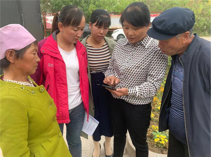 圖為酒泉市瓜州縣廣至鄉(xiāng)干部指導(dǎo)村民使用“微平臺(tái)”。