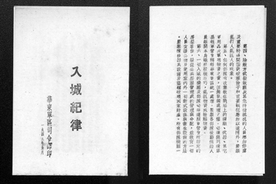 1949年5月,華東軍區(qū)司令部印發(fā)的《入城紀(jì)律》。桂星星 供圖