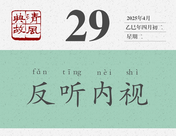 后人將“反聽(tīng)之謂聰,內(nèi)視之謂明”縮減為“反聽(tīng)內(nèi)視”四個(gè)字,并以此為典提醒人們,對(duì)外要虛心聽(tīng)取別人的批評(píng)意見(jiàn),對(duì)內(nèi)要及時(shí)反省自己的所作所為。《后漢書(shū)·王允傳》:“夫內(nèi)視反聽(tīng),則忠臣竭誠(chéng);寬賢矜能,則義士厲節(jié)。”