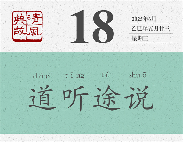 道路上人來人往,來去匆匆,你圖一時之快,我為一時之歡,說者不妨一說,聽者也不妨一聽。而且,越是離奇古怪,越是興致勃勃;越是聳人聽聞,越是神神道道。很快,假的就會被當(dāng)成真的,陳年往事就會被當(dāng)成時下新聞。后人即以“道聽途說”為典,比喻毫無根據(jù)的傳聞。司馬光《論兩浙不宜添置弓手狀》:“吳人輕怯,易惑難曉,道聽途說,眾情鼎沸。”