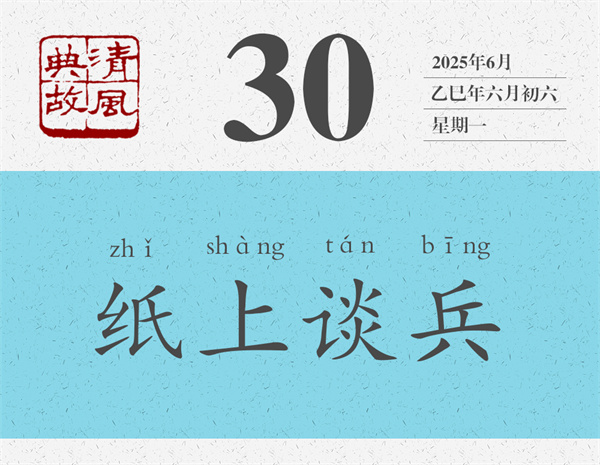 這就是歷史上著名的長(zhǎng)平之戰(zhàn)。后人即根據(jù)趙括只會(huì)照搬兵書(shū)而不知變通之事,引申出“紙上談兵”之典,比喻只會(huì)紙上空談,而不能解決實(shí)際問(wèn)題,或者只會(huì)空發(fā)議論,而得不到真正落實(shí)。清人張問(wèn)陶詩(shī)《即事》:“紙上談兵壁上觀,立言先慮立功難。”
