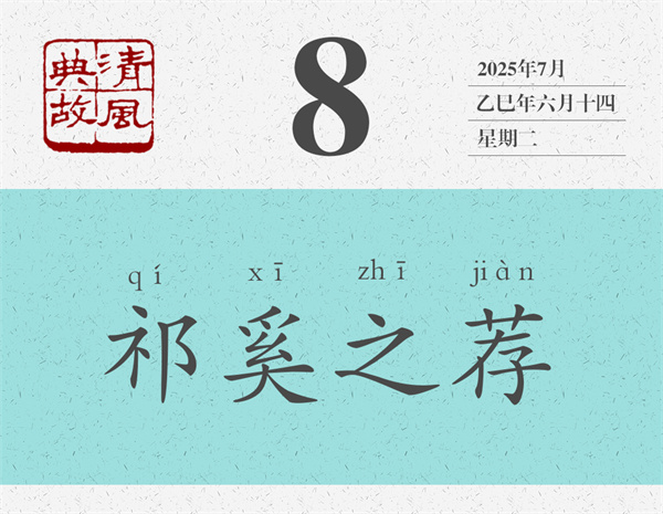 左丘明認(rèn)為,祁奚才是真正能舉薦賢能的人:“稱其仇,不為諂;立其子,不為比;舉其偏,不為黨。”意思是,祁奚推舉他的仇人,不是為了諂媚;推薦自己的兒子,不是出于偏愛;推薦自己的下屬,不是為了結(jié)黨營私?!秴问洗呵铩贩Q:“外舉不避仇,內(nèi)舉不避子,祁黃羊可謂公矣。”后世即以“祁奚之薦”為典,形容舉薦人才心胸開闊,公正無私。唐人姚元崇《答張九齡書》:“歷官三朝,年逾一紀(jì),凡所稱薦,罕避嫌疑,實(shí)有祁奚之舉。”
