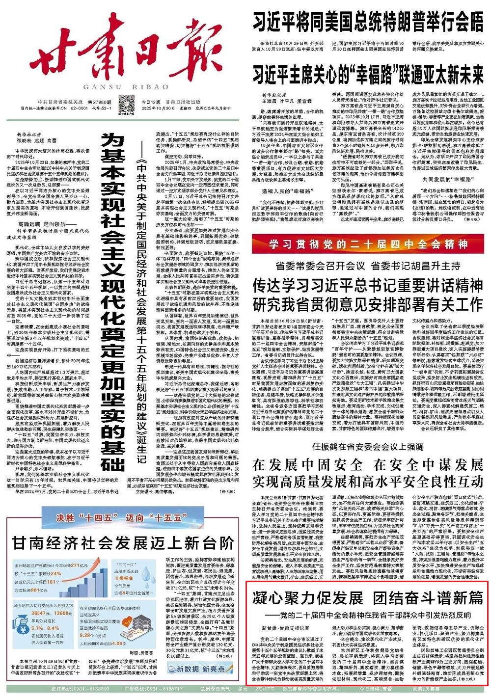 《甘肅日?qǐng)?bào)》2025年10月30日 第1版