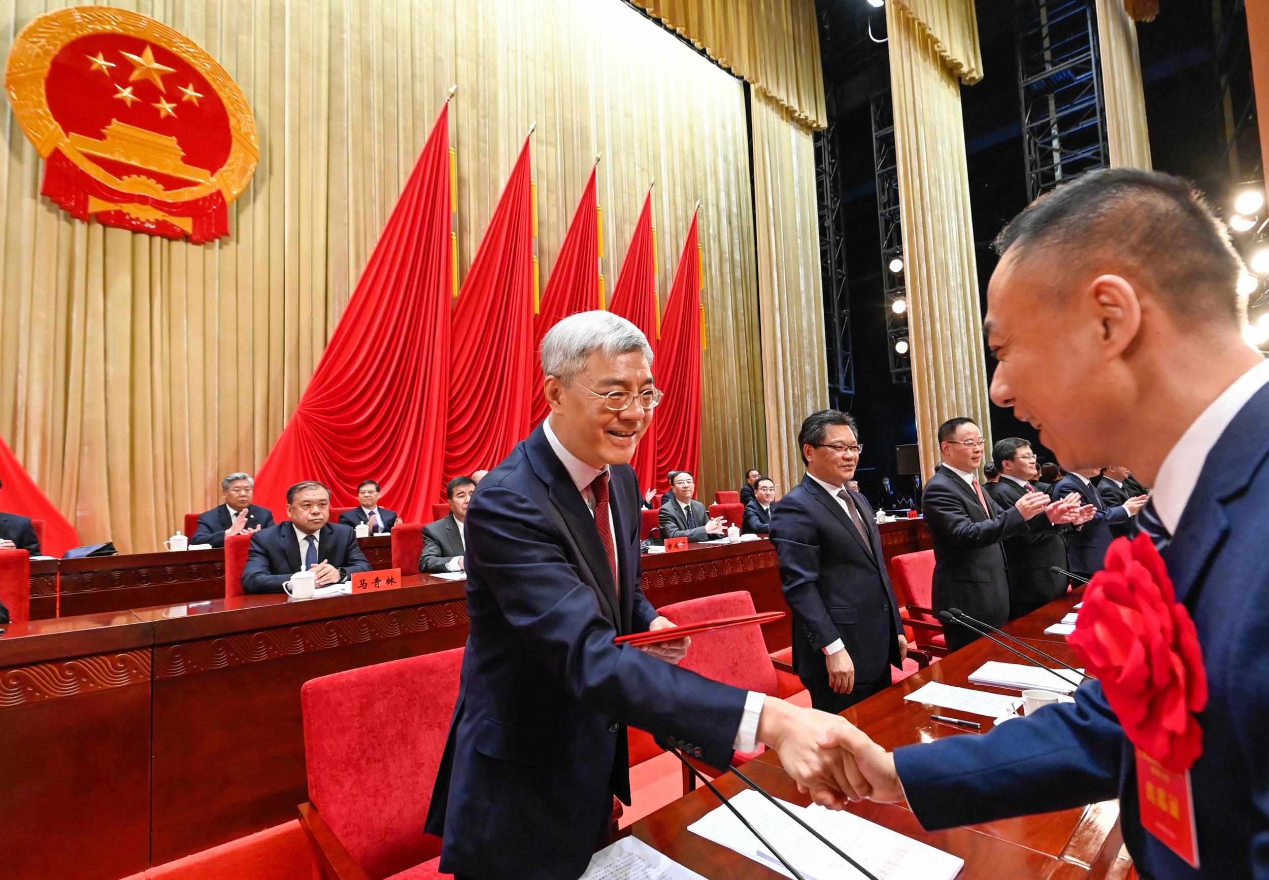 尹弘、任振鶴等向受到表彰的先進(jìn)個(gè)人、先進(jìn)集體代表頒獎(jiǎng)。