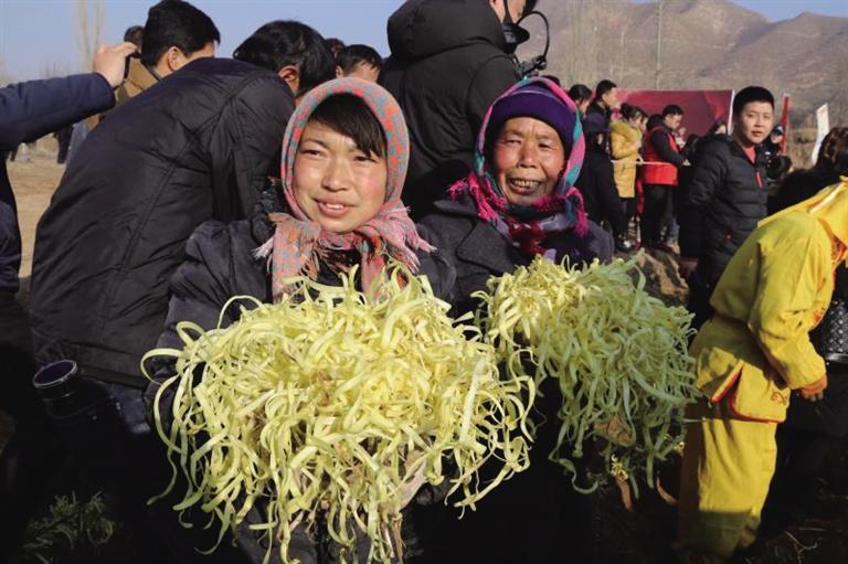 “今年地頭價每斤15元,這還是頭一回。”勞動間隙,村民們議論著韭黃的價格,隨后把一筐筐金燦燦的韭黃放在商販的稱上,接著到手的便是一疊疊鈔票。“給韭黃抖土感覺就像數(shù)錢一樣,嘿嘿,麥草下的‘黃金’今年又豐收了。”村民們你一言我一語,爽朗的笑聲回蕩在冬日的余暉里。