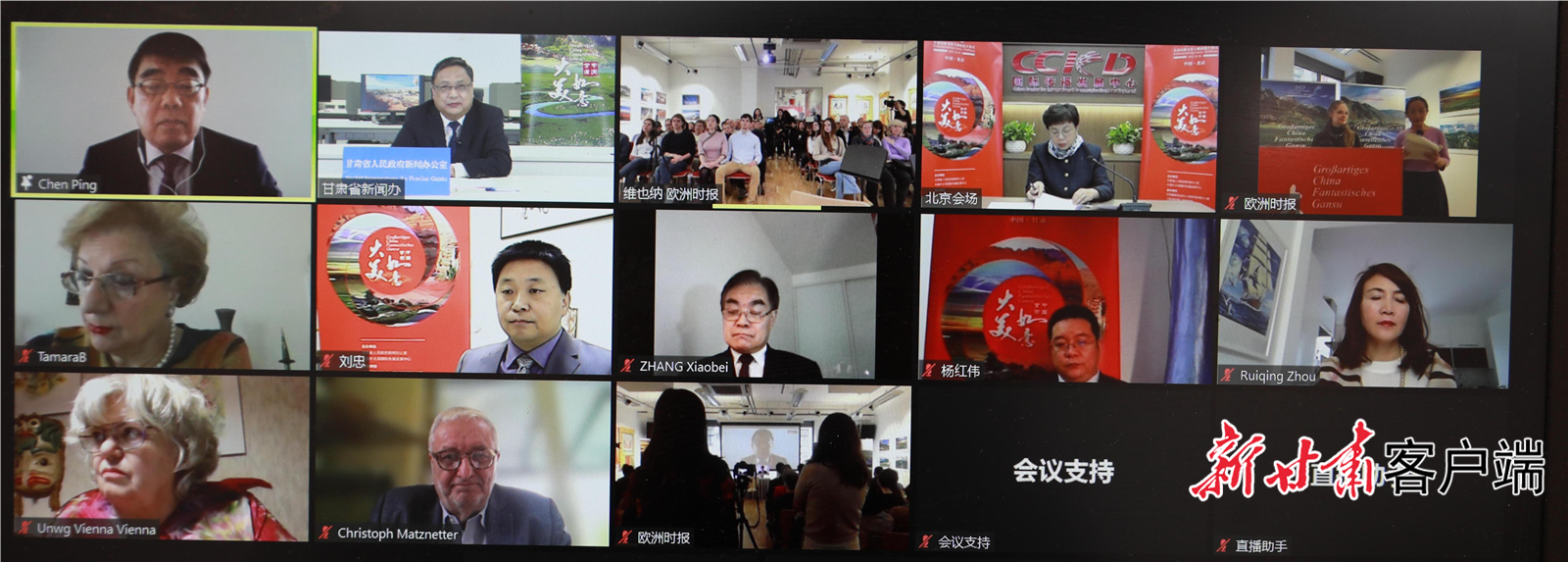主題展開幕式上,甘肅省委宣傳部副部長、省政府新聞辦主任郭錦詩致歡迎辭,并介紹主題展覽情況。中國駐奧地利大使館文化參贊陳平,維也納聯(lián)合國婦女協(xié)會主席桑迪亞·普瑞拉,中國外文局副總編輯、國際傳播發(fā)展中心主任陳實(shí),奧地利聯(lián)邦商會副主席克里斯托弗·馬茨內(nèi)特,歐洲時報文化傳媒集團(tuán)總裁,歐洲時報社社長張曉貝出席開幕式并致辭。甘肅省委宣傳部副部長、省政府新聞辦主任郭錦詩線上出席并宣布主題展開幕。