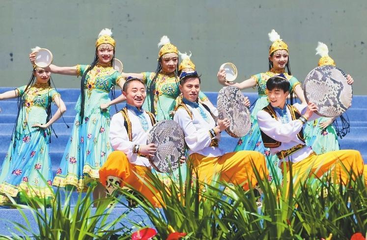 隨著曼妙激昂的舞蹈《石榴花開》上演,這場屬于“花兒”的盛會(huì)正式啟幕。隨后,《雪白的鴿子》《巴西古溜溜》、優(yōu)雅大氣的舞蹈《吉祥歡歌》《絲路民族風(fēng)》《今夜草原有雨》《白牡丹令》等經(jīng)典歌舞節(jié)目精彩上演,贏得臺(tái)下陣陣掌聲。甘肅籍民謠歌手張尕慫帶來的《等風(fēng)來》更是將現(xiàn)場氣氛推向高潮,來自各個(gè)民族的數(shù)千觀眾沉浸在這場非遺文化盛宴中。