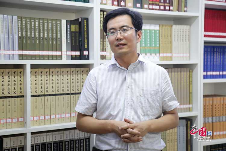 7月31日,西北師范大學(xué)歷史文化學(xué)院教授李迎春接受“簡(jiǎn)牘中國(guó)”媒體團(tuán)的采訪。中國(guó)網(wǎng)記者 鄭偉 攝