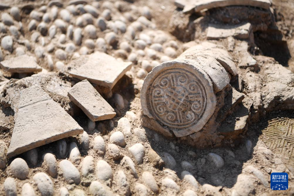 這是甘肅省隴南市禮縣四角坪遺址出土的云紋瓦當(dāng)(2022年6月10日攝)。新華社記者 陳斌 攝