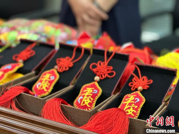5月7日,“甘肅省2024年‘文化和自然遺產(chǎn)日’非遺宣傳展示展銷主會(huì)場系列活動(dòng)暨第十九屆慶陽香包民俗文化節(jié)”新聞發(fā)布會(huì)舉行。圖為發(fā)布會(huì)現(xiàn)場展示的香包制品。楊娜 攝