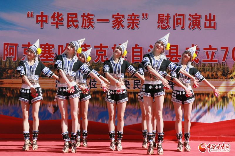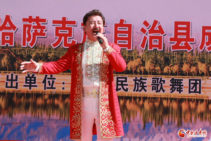 中國甘肅網8月16日訊(西北角·中國甘肅網記者 靳佩佩)歡歌慶盛會,千里送祝福。8月16日,為慶祝阿克塞縣成立70周年,中央民族歌舞團帶著全國各族人民的祝福,以“中華民族一家親”為主題,在阿克塞縣開展慰問演出,為各族人民送上一場美輪美奐的歌舞盛宴。