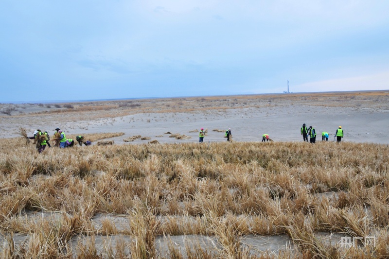 金塔縣防沙治沙現(xiàn)場(央廣網(wǎng)記者 李紅軍 攝)