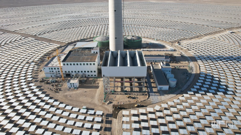 近日,走進金塔中光太陽能“10萬千瓦光熱+60萬千瓦光伏”項目建設(shè)現(xiàn)場,只見綿延數(shù)十公里的太陽能電池板整齊排列,25594面單塊面積30平方米的高精度定日鏡環(huán)繞著247米高的吸熱塔,如同一朵巨大的銀色“向日葵”。