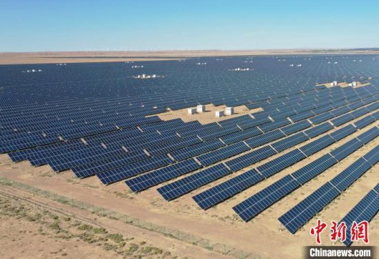 航拍視角下,金昌市西坡光伏產(chǎn)業(yè)園區(qū)內(nèi)的光伏發(fā)電陣列。(資料圖)國網(wǎng)甘肅省電力公司調(diào)度控制中心供圖