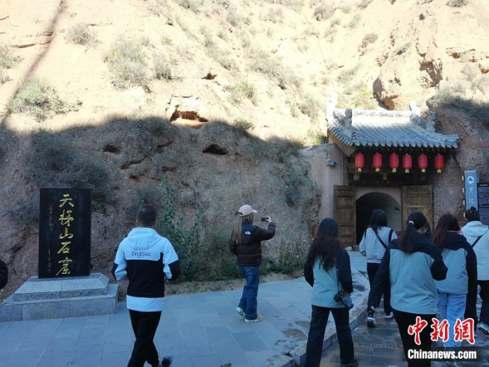 資料圖:位于甘肅武威市涼州區(qū)境內(nèi)的天梯山石窟吸引游人參觀。田鵬鶴攝