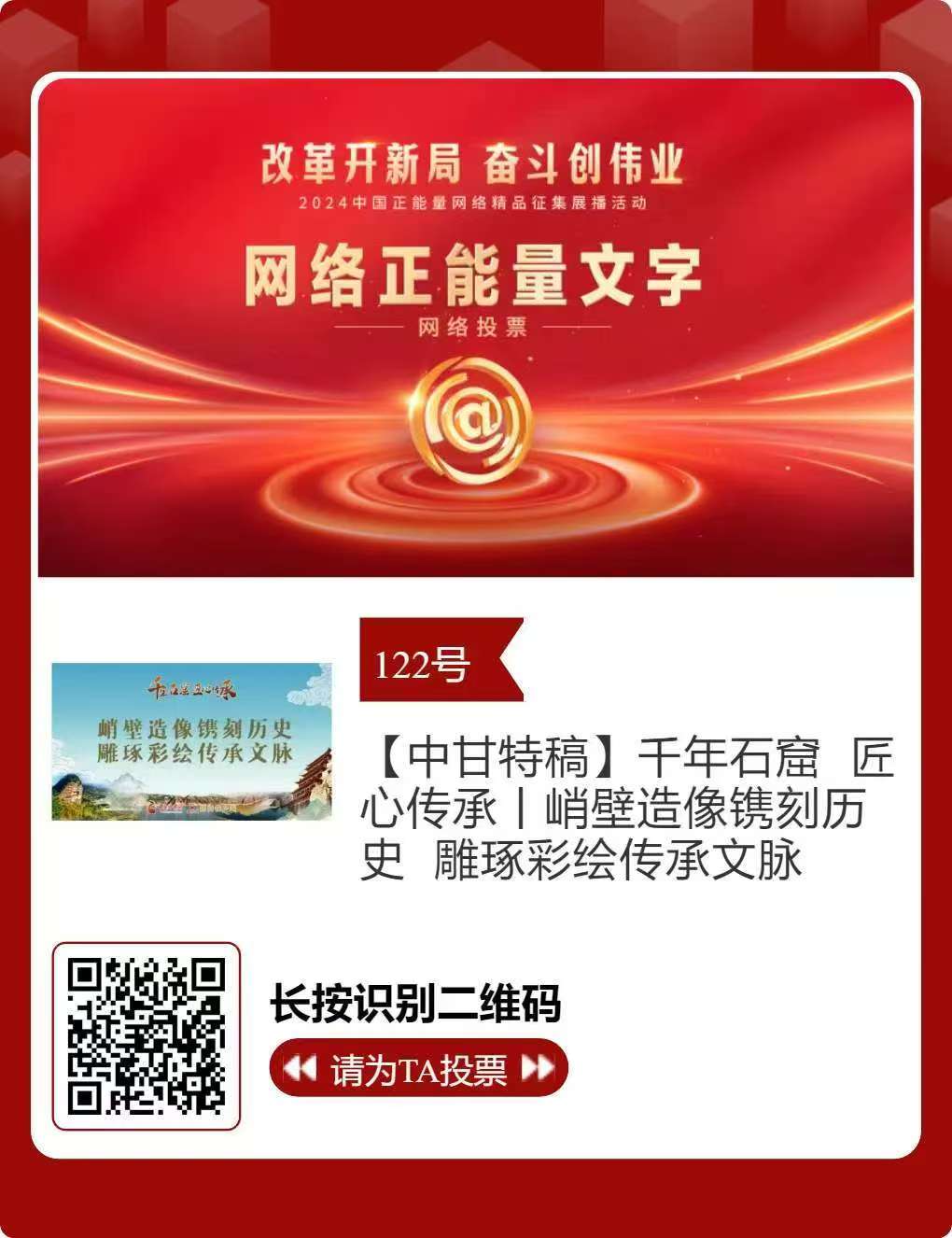 2024中國正能量網(wǎng)絡精品,張掖入圍作品邀您投票!