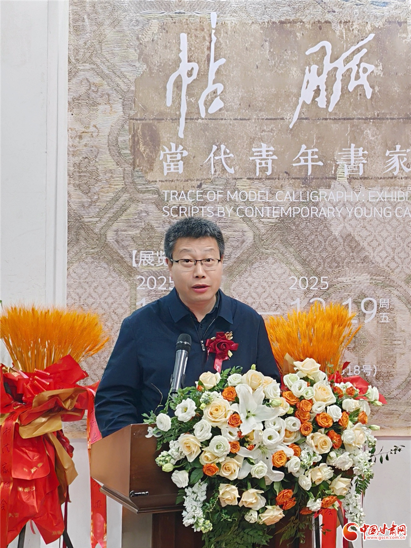 12月14日上午,“帖脈溯望——當代青年書家行草作品展”在甘肅美術館開幕。中國書法家協會理事、甘肅省文聯黨組成員、副主席陳新長在開幕式致辭中表示,河北美術學院七位青年教師的作品展,以九零后的視角重新解讀二王法脈、唐草風神與晚明意趣,作品既有晉唐筆法的精微細膩,又有當代審美的開闊格局。