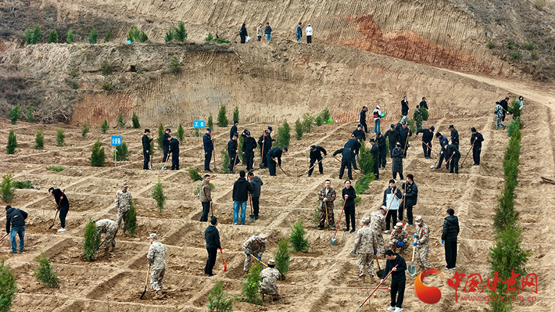 3月10日,武山縣干部職工一同在城關(guān)鎮(zhèn)清池村西坪參加義務(wù)植樹