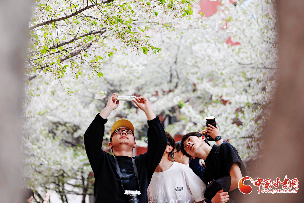 4月6日,攝影愛好者在甘肅蘭州大學(xué)校園內(nèi)拍攝櫻花。