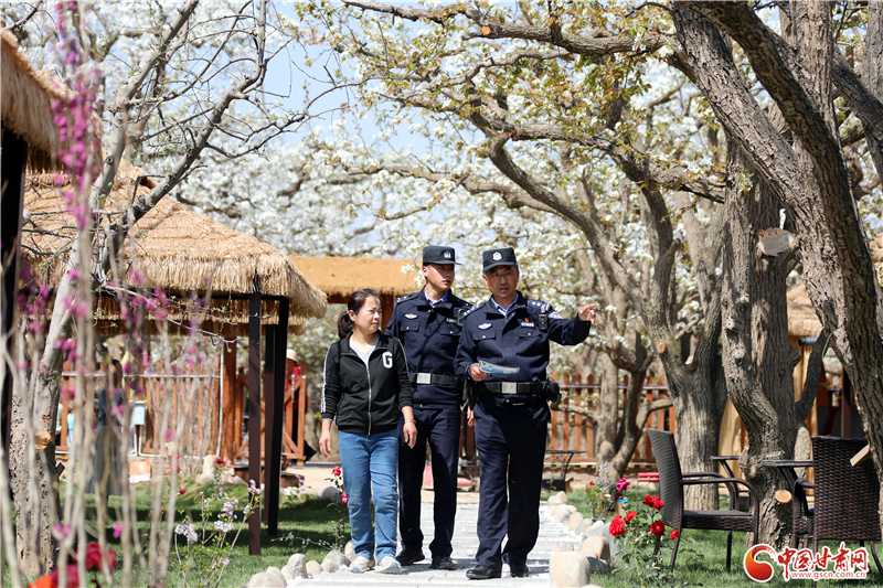 近日,蘭州市皋蘭縣什川古梨園梨花季盛大啟幕,為全力保障景區(qū)安全有序,皋蘭縣公安局全警上陣,筑牢平安防線。執(zhí)勤民輔警深入景區(qū)各重點區(qū)域,開展巡邏防控、隱患排查、便民服務(wù),同步開展安全宣傳,守護(hù)游客出行安全。從交通疏導(dǎo)、暖心救助到隱患排查、安全宣講,皋蘭公安以堅守赴春約,用藏藍(lán)護(hù)平安,全力護(hù)航梨花季,讓平安與美景同行。