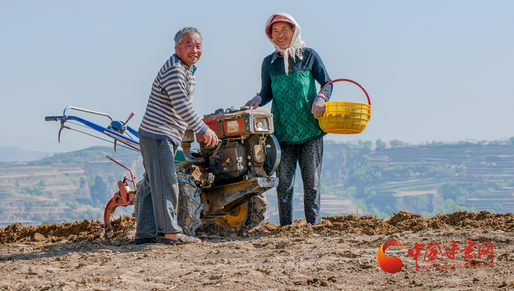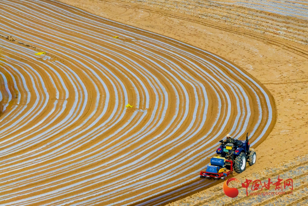 春日,走進(jìn)定西臨洮的田間地頭,一壟壟覆膜蜿蜒如銀色絲帶,在暖陽下泛起粼粼波光。洮河水畔,杏花初綻,村民們正彎腰點(diǎn)種、培土壓膜。新翻的泥土氣息混著花香彌漫田間。農(nóng)機(jī)轟鳴處,白膜與藍(lán)天相映,勾勒出黃土高原上最動(dòng)人的春耕畫卷。
