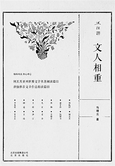 就本書作者馬靖云的潛質(zhì)和文筆來說,她不應(yīng)該只提供136千字的《文人相重》就戛然而止,她還應(yīng)該有續(xù)篇。而今,她雖然年過九旬,卻還思維敏捷,記憶鑿鑿,筆力遒勁。就文學(xué)所而言,依然以科研為視角,至少還有兩方面的人可書寫,而且有價值、有市場。一是從延安來的、從解放區(qū)來的老革命,如王平凡、唐棣華、朱寨、賈芝、力揚(yáng),他們或當(dāng)領(lǐng)導(dǎo),或為學(xué)者,稍加發(fā)掘,均可能得富礦;二是一大群中青年學(xué)者的涌現(xiàn),如曹道衡、胡念貽、劉世德、陳毓羆、蔣和森、錢中文、樊駿、袁可嘉、陳冰夷、柳鳴九、陳燊、董衡巽,等等,無不學(xué)有專攻,有故事,記錄下來,就精彩,甚至就是詩。