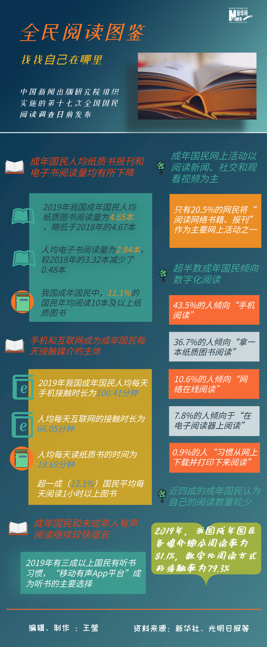 今天是世界讀書日,中國(guó)新聞出版研究院日前公布第十七次全國(guó)國(guó)民閱讀調(diào)查結(jié)果。國(guó)民人均一年讀幾本書?用在閱讀上的時(shí)間有多少?隨著移動(dòng)互聯(lián)趨勢(shì)的發(fā)展,在閱讀方式和閱讀習(xí)慣上有哪些改變?跟隨這份全民閱讀圖鑒,找找自己在哪里。
