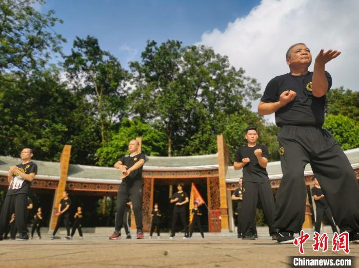 佛山市政府今年印發(fā)了《佛山市加快建設(shè)“世界功夫之城”實施方案》,各區(qū)大力推進武術(shù)發(fā)展平臺建設(shè),圖為當(dāng)?shù)靥厣?ldquo;廣場武”?!?yīng)妮 攝
