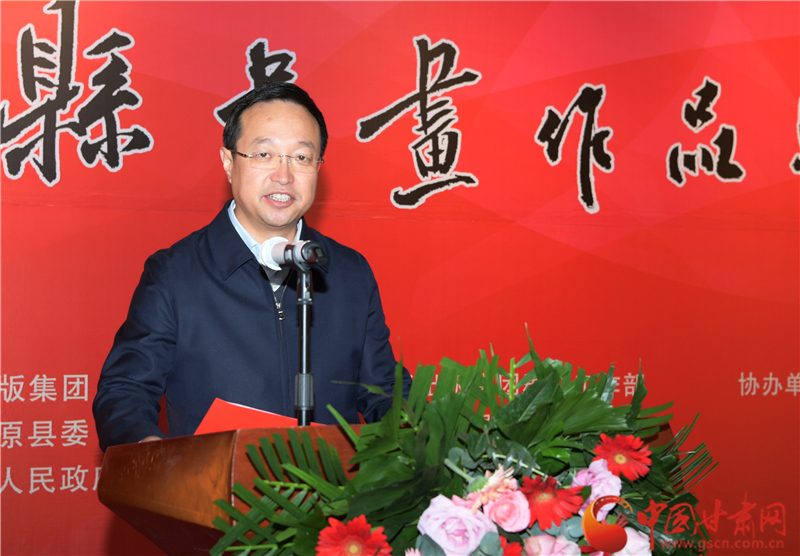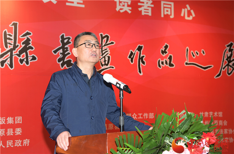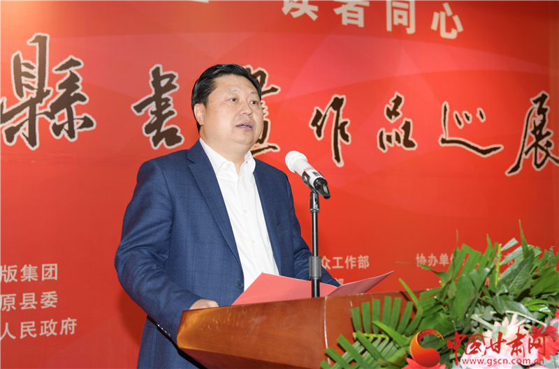 劉永升在致辭中說,鎮(zhèn)原是中國(guó)書法之鄉(xiāng),讀者是甘肅文化名片,企縣因扶貧而結(jié)緣,因文化而牽手。自2017年定點(diǎn)幫扶鎮(zhèn)原以來,讀者出版集團(tuán)著力實(shí)施了一批“看得見、摸得著、留得下、有成效”的好項(xiàng)目,探索出一條富有“讀者”特色的幫扶路子。特別是立足文化企業(yè)定位,堅(jiān)持扶智扶志,通過開展勞動(dòng)技能培訓(xùn)、幫助改善教育條件、推介宣傳地方資源、建設(shè)“讀者鄉(xiāng)村文化驛站”等一系列卓有成效的工作,切實(shí)打好“文化扶貧”牌,既堅(jiān)定了廣大群眾戰(zhàn)勝貧困的信心和決心,更激發(fā)了貧困群眾依靠雙手、勤勞致富的積極性、主動(dòng)性。此次與鎮(zhèn)原縣聯(lián)合舉辦書畫巡展,是開展文化扶貧、助力書香社會(huì)建設(shè)的務(wù)實(shí)之舉,也是提升“文化鎮(zhèn)原”影響力、加快地方文化產(chǎn)業(yè)發(fā)展的積極行動(dòng),更是提高貧困群眾文化素質(zhì)、振奮群眾精神風(fēng)貌的重要舉措。