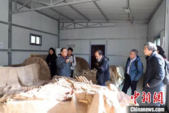 2020年11月15日,甘肅省文物考古研究所在甘肅天水市組織召開《甘肅毛家坪遺址車馬坑整體提取及實驗室考古發(fā)掘工作》項目初步驗收會。專家組現(xiàn)場考察了實驗室清理、加固、拼接及保護復(fù)原的三輛遺跡車馬。甘肅省文物考古研究所供圖