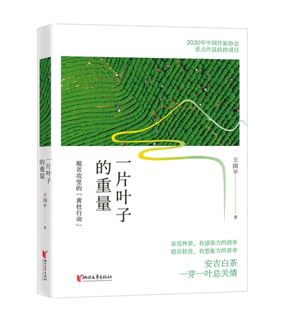 王國平報(bào)告文學(xué)《一片葉子的重量——脫貧攻堅(jiān)的“黃杜行動”》寫的黃杜村,位于浙江省湖州市安吉縣,那里曾經(jīng)是個(gè)貧困山村。“一片葉子富了一方百姓”,在擺脫貧困的道路上,村民們艱苦奮斗,使黃杜村成為安吉白茶的重要產(chǎn)地,家鄉(xiāng)面貌煥然一新。