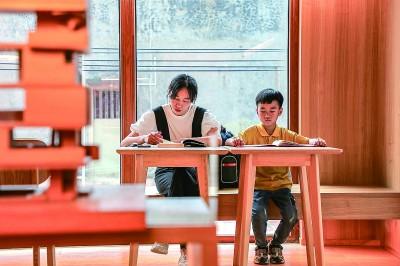 5月8日,一對(duì)母子在福建省晉江市東石鎮(zhèn)“母親的房子”圖書(shū)館內(nèi)閱讀。今年5月,福建省晉江市東石鎮(zhèn)“母親的房子”圖書(shū)館正式對(duì)外開(kāi)放。“母親的房子”是福建省晉江東石籍作家蔡崇達(dá)《皮囊》書(shū)里所描述的一座房子?,F(xiàn)在,這座房子被他改造成了一座現(xiàn)代風(fēng)格與閩南特色相融合的公益圖書(shū)館,成為當(dāng)?shù)毓参幕囊徊糠帧P氯A社發(fā)
