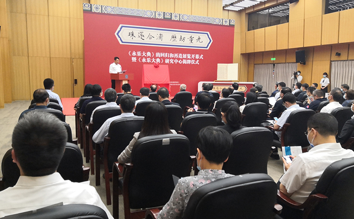 5月31日下午,“珠還合浦 歷劫重光——《永樂大典》的回歸和再造”展覽開幕式暨《永樂大典》研究中心揭牌儀式在國家圖書館舉行。
