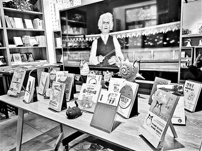 書店正中擺放著一個巨大的電視屏幕,正在循環(huán)播放著卓別林的喜劇電影《城市之光》經(jīng)典片段,屏幕前面擺放著各類被重點(diǎn)推薦的新書。“這本《笑的科學(xué)》是比較有學(xué)術(shù)性的書;這本《我思故我笑》,是講哲學(xué)和幽默的書;這本《世界上最壞的貓》,我們還為它搭配了一個黑貓玩具,這樣看起來比較吸引人。”書店主理人豈航向北青報(bào)記者介紹道,