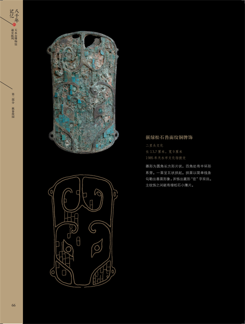 《八千年的記憶——天水市博物館通史陳列》圖錄,是在2018年天水市博物館通史陳列展覽提升改造基礎(chǔ)上提煉而成,以天水市博物館能夠反映天水歷史文化面貌的館藏精品文物為重點(diǎn),輔之以天水地區(qū)出土的藏于其他文物機(jī)構(gòu)的重點(diǎn)文物,旨在展示天水八千年歷史文脈和文明成就。全書共分為文明曙光、嬴秦故園、兩漢物華、魏蜀兵戈、渭水梵音、隋唐盛景、茶馬大市、古城遺韻8個(gè)部分,擷集天水文物精粹,在展現(xiàn)天水自舊石器時(shí)代至明清時(shí)期完整歷史序列的同時(shí),突出了獨(dú)具天水特色的歷史文化資源。