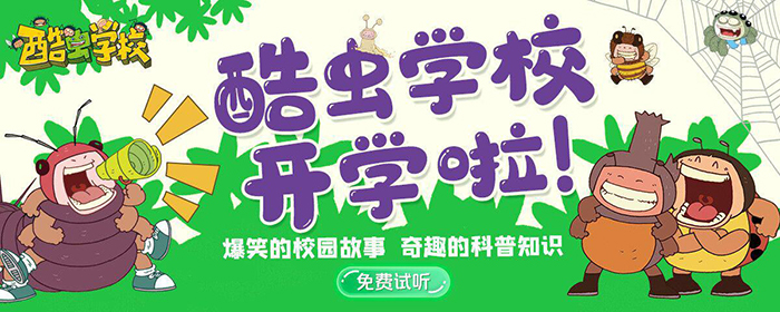 根據(jù)原創(chuàng)昆蟲科普知識爆笑校園漫畫改編的《酷蟲學??破沼新暪适隆?,以爆笑幽默的校園故事、新奇有趣的科普知識、廣播劇標準的精心制作等特點,激發(fā)小讀者對大自然的熱愛,建立生態(tài)文明的宏觀觀念。