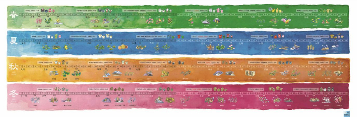 每一個(gè)節(jié)氣再劃分為三候……這三候分別以幾個(gè)字的形容,分成初中末三段對應(yīng)置入年歷中,文字中可感受到早年中國黃河流域的景物。