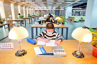 江蘇省南京市六合區(qū)圖書館成為市民讀書學(xué)習(xí)的理想場(chǎng)所。史俊攝/光明圖片