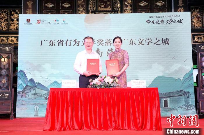 廣東省有為文學(xué)獎(jiǎng)是繼廣東省魯迅文學(xué)藝術(shù)獎(jiǎng)(文學(xué)類)之后,廣東文學(xué)界推出的專門針對(duì)文學(xué)類作品評(píng)選的又一重磅大獎(jiǎng),每?jī)赡昱e行一屆。啟動(dòng)儀式上,廣東省作家協(xié)會(huì)和佛山市南海區(qū)人民政府的代表在協(xié)議書上簽字,宣告該獎(jiǎng)永久落戶佛山南海。