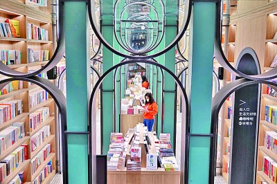 讀者在山東煙臺(tái)市鐘書(shū)閣書(shū)店讀書(shū)。唐克攝/光明圖片