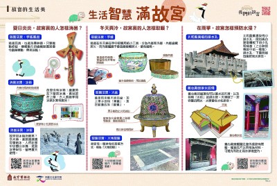 在選材上,“我們的故宮”系列教材注重配合學(xué)校的跨課程主題活動,緊密配合語文、歷史等課程內(nèi)容,為學(xué)校教育充當(dāng)有益的補充。此外,教材特別注重“生活化”。為了使幾百年前的歷史活靈活現(xiàn)地呈現(xiàn)在中小學(xué)生面前,教材多以日常生活作為切口,讓孩子們從飲食起居的點點滴滴中了解古人的思想觀念。比如展現(xiàn)故宮“生活美”的展板,以清代帝王在紫禁城中的日程為線索,呈現(xiàn)了皇帝書房和臥室的環(huán)境。孩子們可以從自己每天也要經(jīng)歷的平常事中體會古今差異,感受學(xué)習(xí)的趣味。