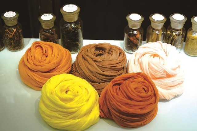 而與大多數(shù)傳統(tǒng)色彩研究者不同的是,曾啟雄極為重視實(shí)驗(yàn)考證。作為一位技藝精湛的染色家,其論著里介紹傳統(tǒng)染色的文本內(nèi)容及圖片,都是他親歷親為、反復(fù)實(shí)驗(yàn)后的成果,這也是該書最為精彩之處。在染色實(shí)驗(yàn)過程中,除了復(fù)原了傳統(tǒng)顏色的本來面貌外,作者還做出如下貢獻(xiàn):首先,通過大量實(shí)驗(yàn)印證了古籍記載的真?zhèn)危⒓m正了其中一些不實(shí)之處。比如,他通過在柘木里添加明礬、高溫染色后的結(jié)果,顛覆了以往認(rèn)為唐代帝王穿用的“柘黃”袍服是暗淡赭黃色的普遍認(rèn)知,印證其應(yīng)為類似明清時(shí)代帝王使用的明黃色。其次,使用不少篇幅介紹了不同的染料、媒介物等因素對(duì)于染色效果等的制約作用。以石榴皮作為染材為例,當(dāng)它與不同媒染劑,如明礬、鐵等進(jìn)行染色時(shí),則會(huì)形成由黃色到黑褐色的不同顏色。即使采用相同的染法,因棉麻絲綢等介質(zhì)迥異,也會(huì)染出不同顏色等。最后,該書對(duì)于各種染料特點(diǎn)、工藝程序、顏色效果等的表述,較其他相關(guān)論著也更加纖悉無遺和引人入勝,如關(guān)于紫膠蟲的染色工序的詳盡介紹等,讓讀者有一種身臨其境、意欲參與的感受。