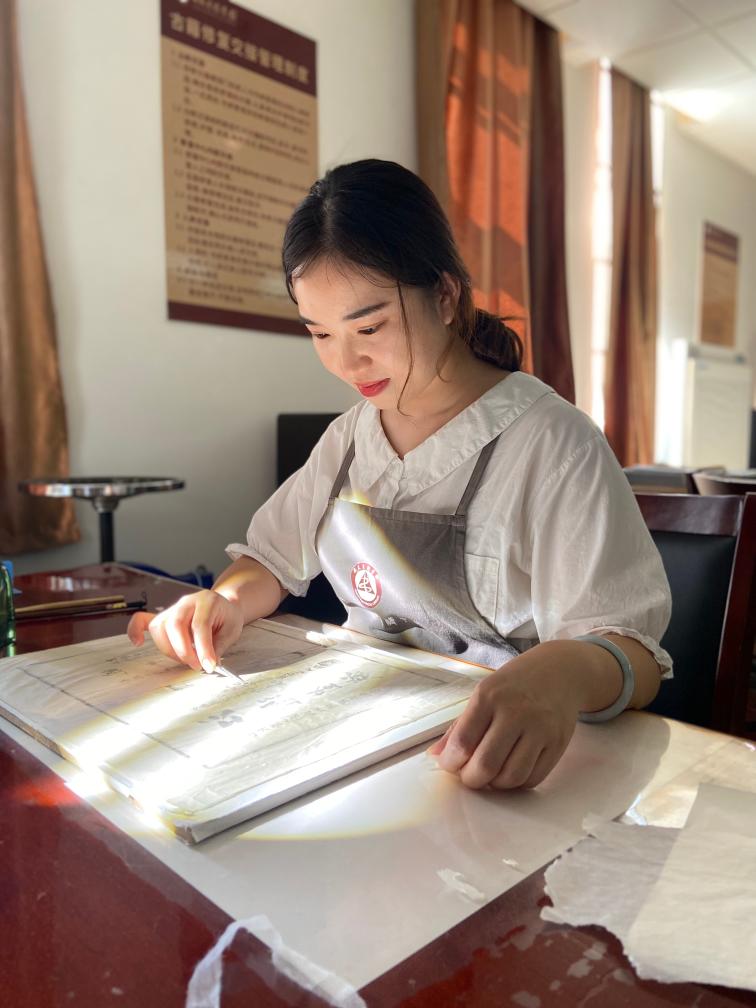 新華社合肥10月6日電(記者劉美子)清晨的陽光透過層疊的梧桐葉,灑落在有著百年歷史的安徽省圖書館建筑上,在這里,古籍修復(fù)師耿寧開始了一天的工作。她小心翼翼地揭起一張“傷痕累累”的待修書葉,對著光仔細查看,選配補書的紙張。這是古籍修復(fù)的重要一環(huán),耿寧絲毫不敢怠慢。
