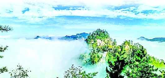 然而,天水石門山的饋贈(zèng)還不止這些。由于石門山地理位置特殊,宜人的氣候經(jīng)常會(huì)造就氣勢(shì)磅礴的浩瀚云海。云海平靜時(shí),云霧便在半山腰停住腳步。站在山巔遠(yuǎn)眺,只見腳底下半山腰白霧團(tuán)團(tuán),感覺自己在云山之巔,飄飄欲仙。“不知天上宮闕,今夕是何年?”此情此景,比畫更有靈氣,比詩更具意境。置身其中,感覺空氣都被浸潤(rùn)得芳香四溢,令人心曠神怡。