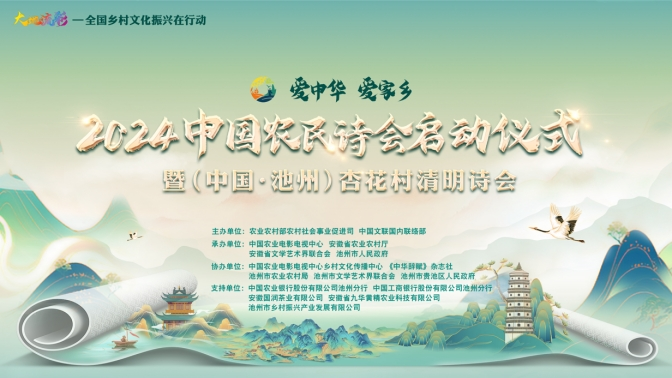 大地流彩,詩賦“三農(nóng)”。3月31日,“大地流彩—全國鄉(xiāng)村文化振興在行動”重點活動“愛中華愛家鄉(xiāng)”2024中國農(nóng)民詩會啟動儀式暨(中國·池州)杏花村清明詩會在安徽池州杏花村文化旅游區(qū)舉辦,主題為“春和景明詩出池州”。本次活動由農(nóng)業(yè)農(nóng)村部農(nóng)村社會事業(yè)促進司、中國文聯(lián)國內(nèi)聯(lián)絡(luò)部主辦,中國農(nóng)業(yè)電影電視中心、安徽省農(nóng)業(yè)農(nóng)村廳、安徽省文學藝術(shù)界聯(lián)合會、池州市人民政府承辦。