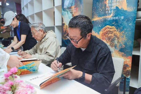 年會上還舉辦了“科幻中的故土情懷”圓桌論壇,由程婧波擔(dān)任主持人,董仁威、江波、甘偉康、石以、超俠、顧適、劉玉杰參加對話交流。當(dāng)晚在首鋼園•全民暢讀藝術(shù)書店舉行新書簽售活動,王晉康、劉慈欣、董仁威、超俠、寶樹、江波、程婧波、顧適等本書8位作者代表全書56位中國科幻重磅作家簽售,現(xiàn)場讀者數(shù)百人參加,快手新知平臺50余萬人在線圍觀,刷新了科幻圖書出版簽售少有的火爆場面。