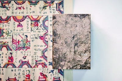 整本書在書口處還特別進(jìn)行了雕刻,并采用噴繪工藝,強(qiáng)化石面凹凸不平的質(zhì)感,讓讀者能夠觸摸書口的不同深度,豐富了觸覺上的感受。包裹書脊的紗布,經(jīng)過(guò)茶葉染色的特殊處理,呈現(xiàn)出雅致的淺褐色。